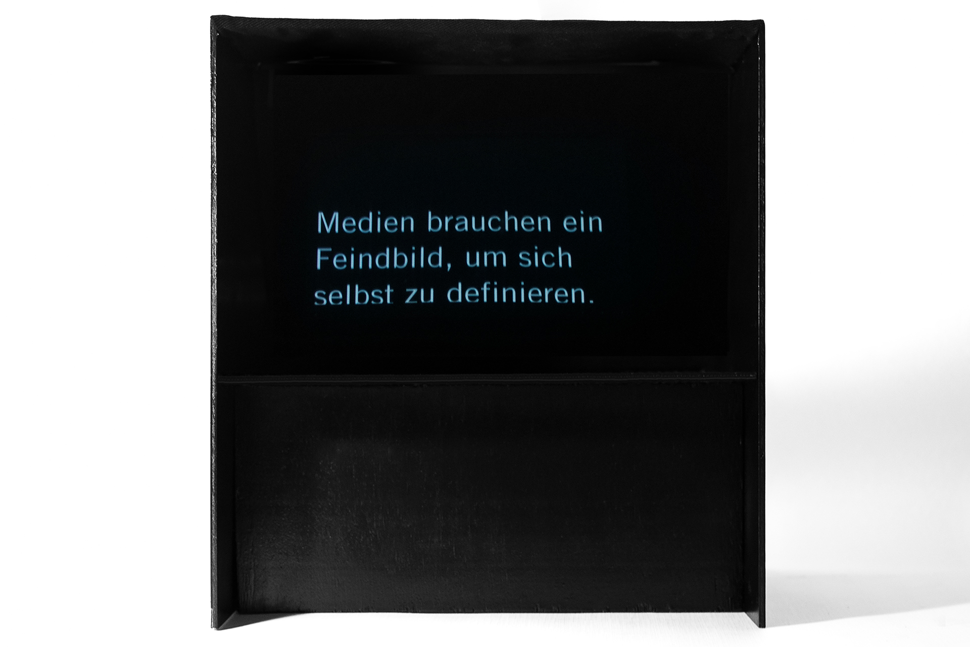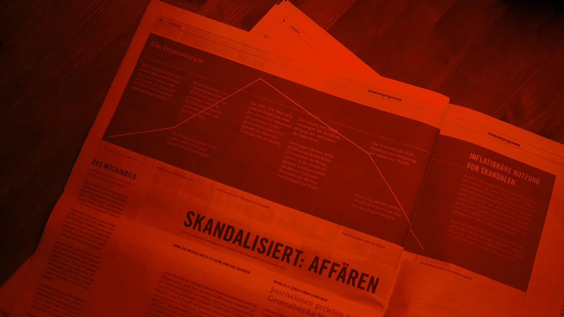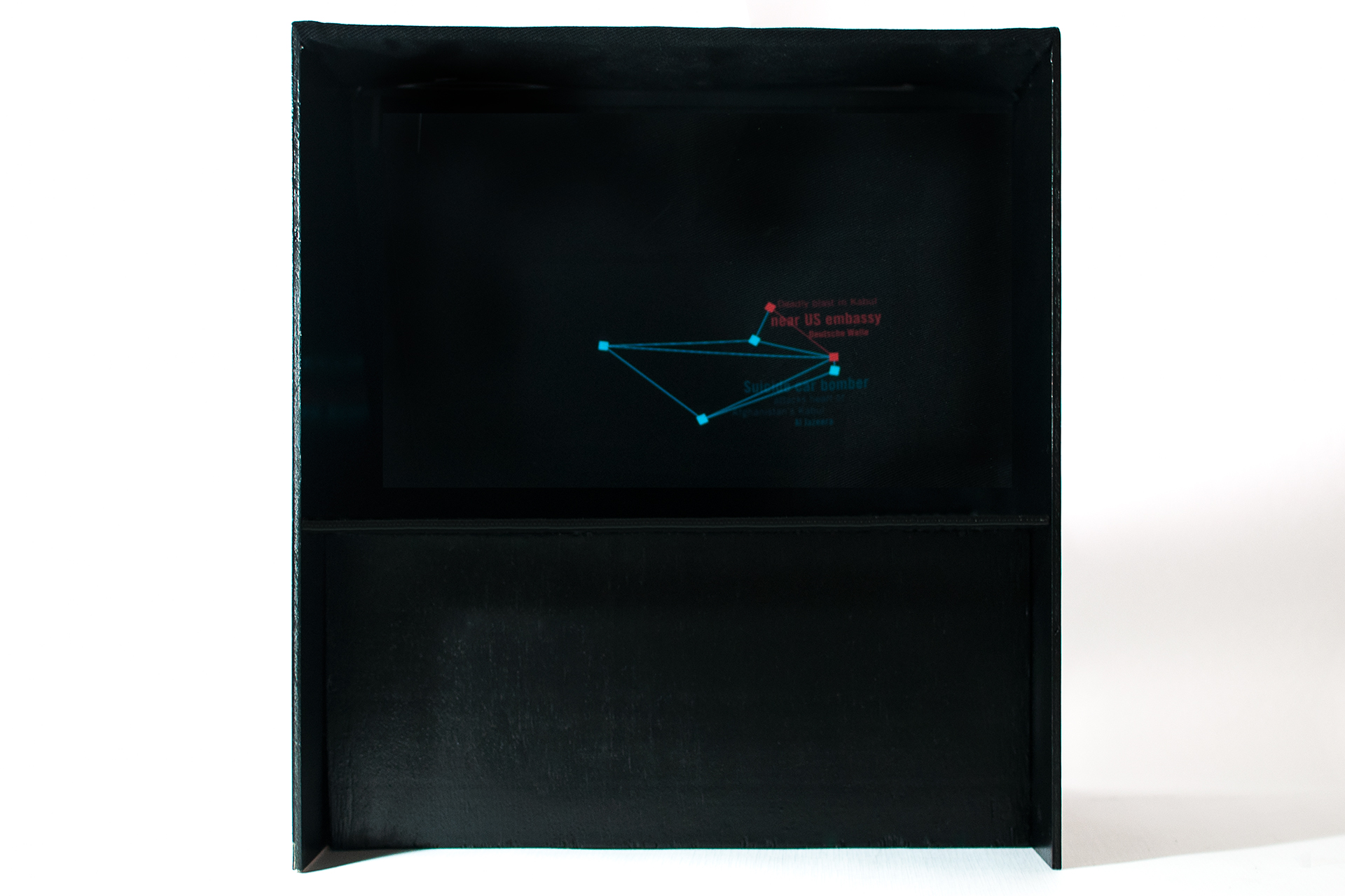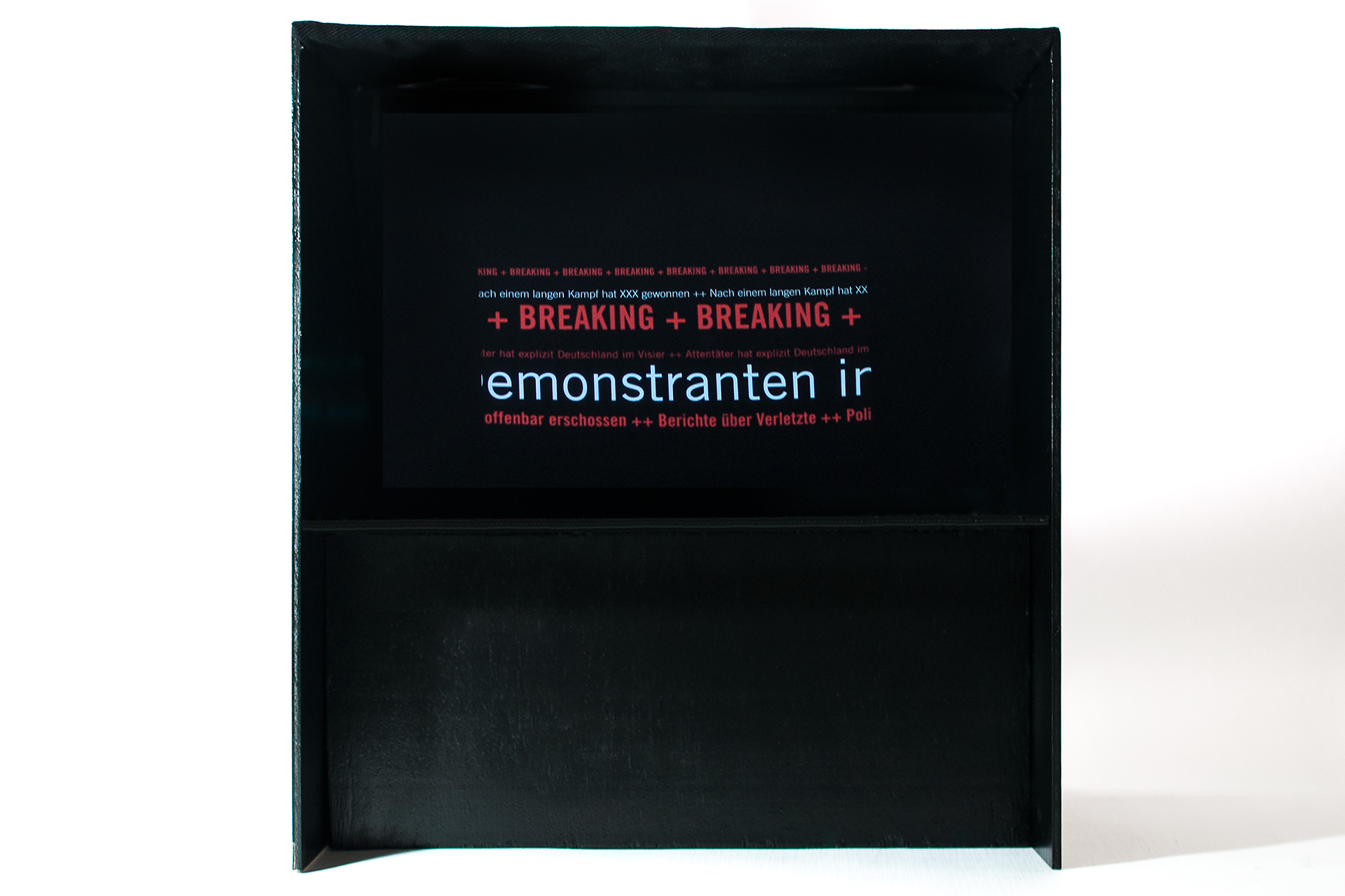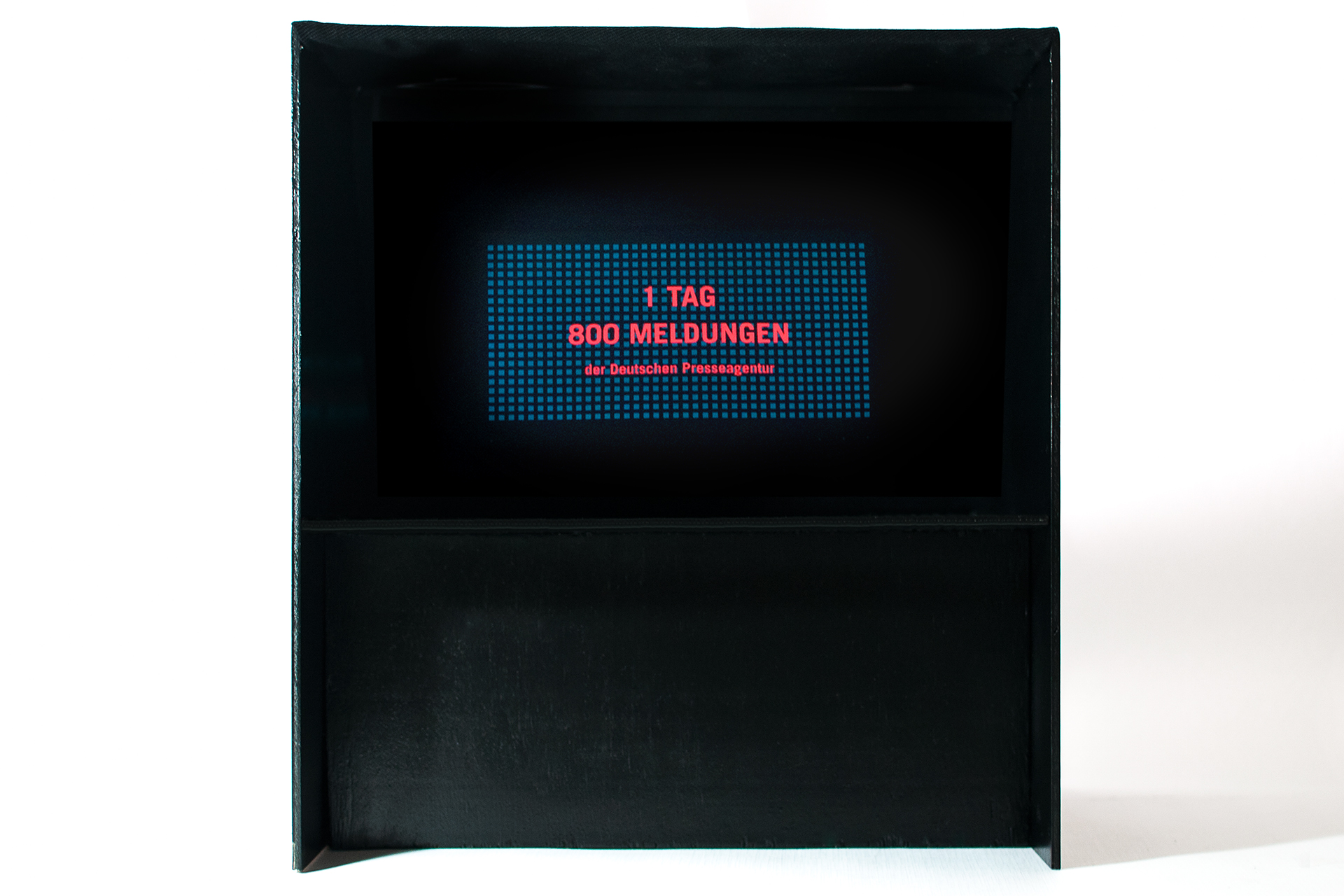 Durch animierte Infografiken werden die Inhalte der Zeitung erweitert. Dazu wurde eine Teleprompter-Box angefertigt, die die Reflexion des Tablets gut sichtbar widerspiegelt.
