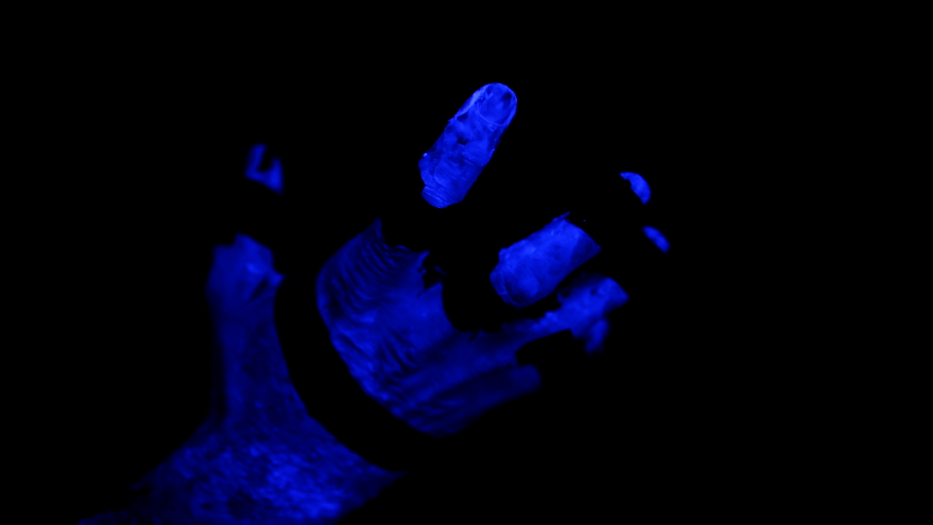 In der Szenerie der fluoreszierenden Farben wird ein kleines Eifersuchtsdrama erzählt.
